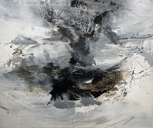 akryyli kankaalle, pigmenttinä tuhka ja noki
